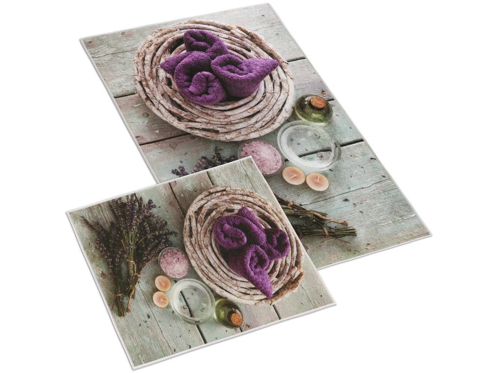 Koupelnová sada předložek 3D 60x100+60x50cm bez výkroje Levandule
